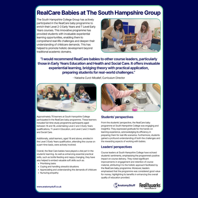 I would recommend RealCare babies to other course leaders, particularly those in Early Years Education and Health and Social Care. It offers invaluable experiential learning, bridging theory with practical application, preparing students for real-world challenges.